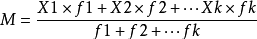 設(shè)原始數(shù)據(jù)為被分成K組,各組的組中的值為X1,X2,...,Xk,各組的頻數(shù)分別為f1,f2,...,fk,加權(quán)算術(shù)平均數(shù)的計(jì)算公式為: