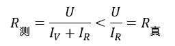 由于電壓表的分流作用使得被測(cè)電阻值小于電阻的真實(shí)值,當(dāng)電壓表內(nèi)阻越大的時(shí)候其分流作用越弱,被測(cè)電阻值就越接近真實(shí)值。