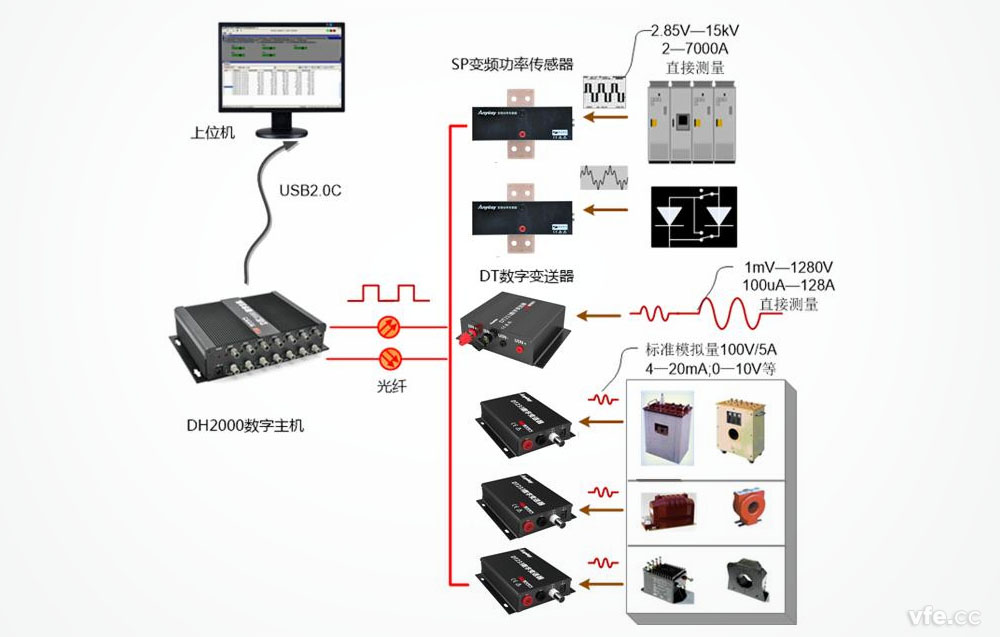 DH2000數(shù)據(jù)采集系統(tǒng)的精度指標(biāo)取決于采用的前端數(shù)字化產(chǎn)品:SP系列變頻功率傳感器和DT系列數(shù)字變送器。